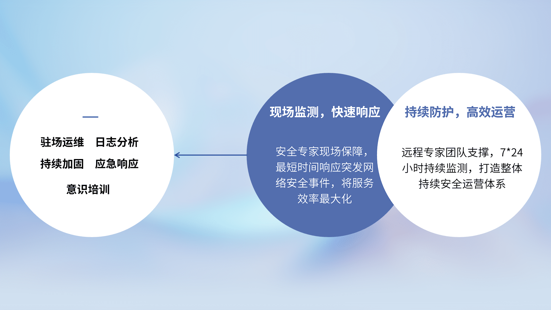 7X24小时持续监测安全事件,保持安全策略有效性,降低资产脆弱性风险,,精准拦截黑客攻击,,,,减少被黑客利用的机会,,,,第一时间遏制,,,,降低损失。。